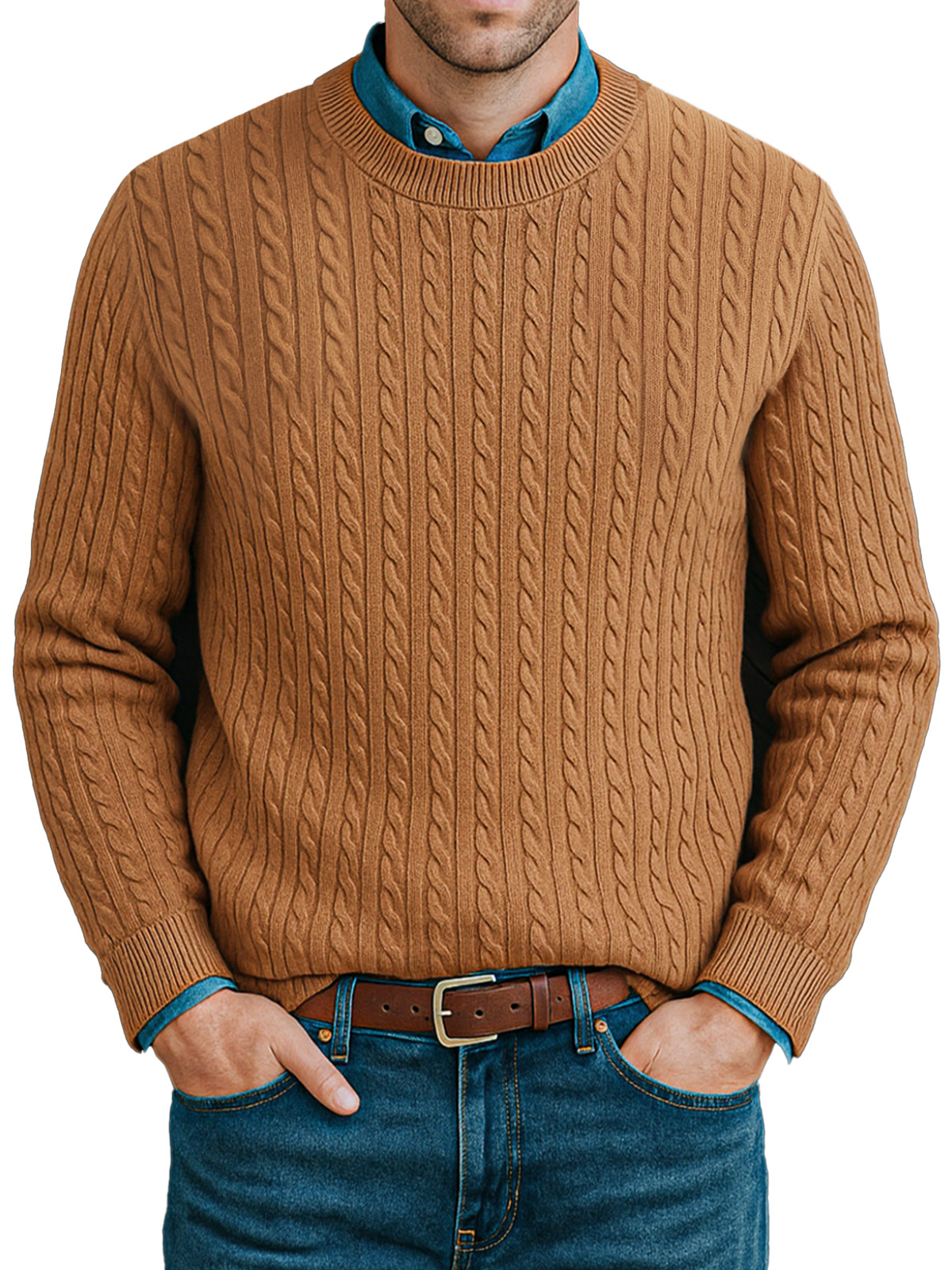 Men's Casual Twist Knitted Versatile Crew Neck Sweater-Customized products