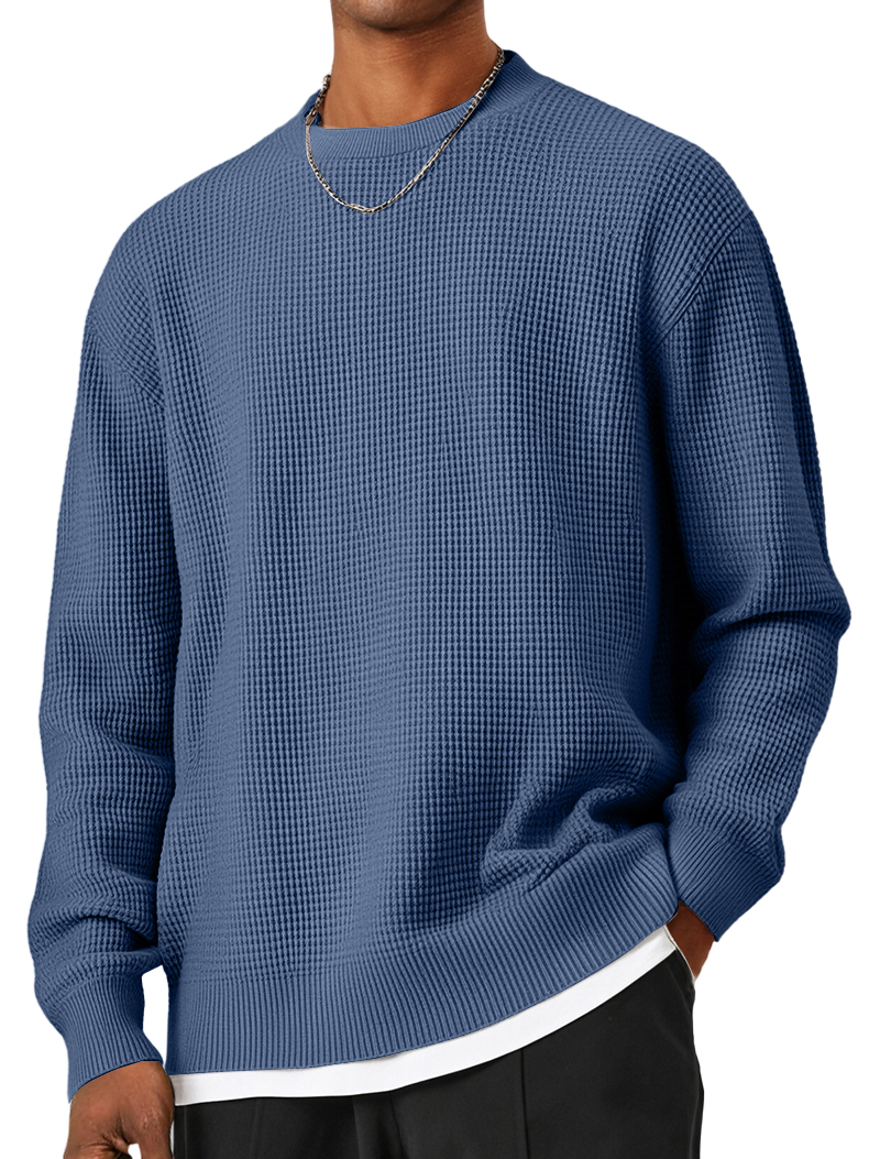 Men's Round Neck Waffle Patterned Loose Fitting Knit Sweater-Customized products