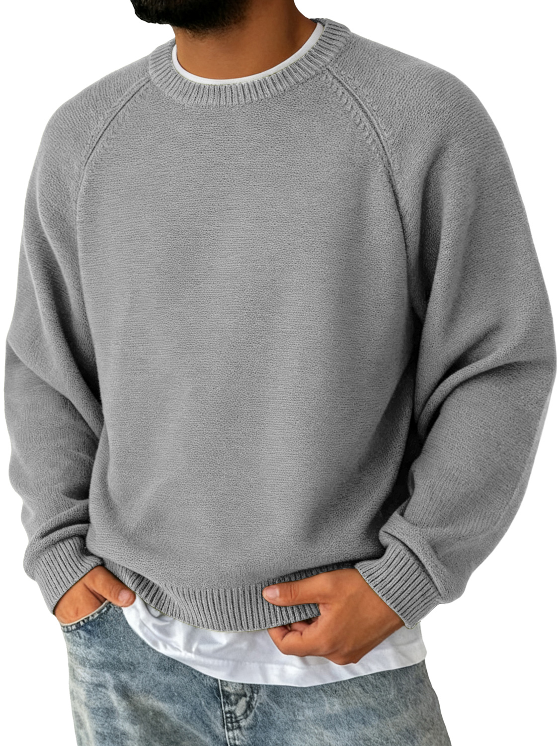 Men's Simple Round Neck Raglan Sleeve Casual Comfortable Sweater-Customized products